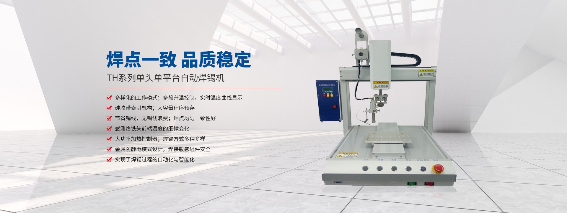 蘇州拓航機(jī)械設(shè)備有限公司成立于2016年,是一家集研發(fā)、制造、銷售及技術(shù)服務(wù)于一體的自動化設(shè)備生產(chǎn)廠家,主營產(chǎn)品有自動螺絲機(jī)、自動焊錫機(jī)、自動點(diǎn)膠機(jī)、自動灌膠機(jī) 脈沖熱壓機(jī),及各類型的非標(biāo)自動化設(shè)備。